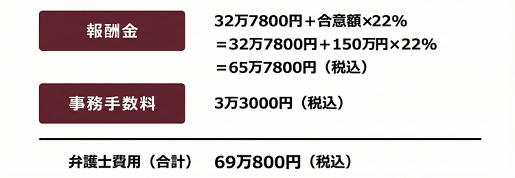 相手方と合意した慰謝料金額<報酬金・事務手数料・特別事務手数料・実費・特別実費・期日等手数料の合計
